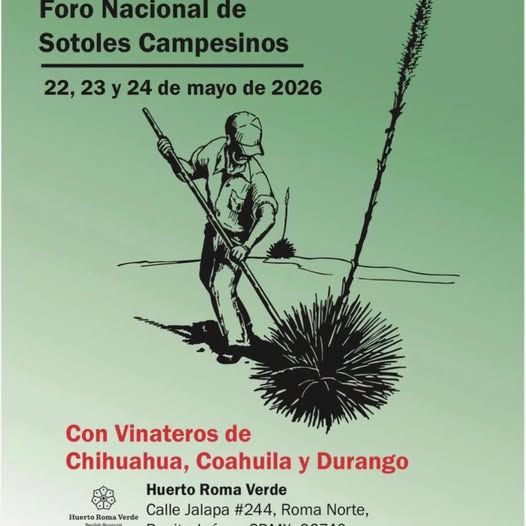 El Sotol es uno de los destilados mexicanos más auténticos y menos conocidos del gran público. Elaborado a partir de la planta Dasylirion —endémica del norte de México y partes de Texas— este espíritu ancestral tiene su propio foro: el 2do Foro Nacional de Sotoles Campesinos, que se celebrará del 22 al 24 de mayo de 2026 en el Huerto Roma Verde, en la colonia Roma Norte de la Ciudad de México.