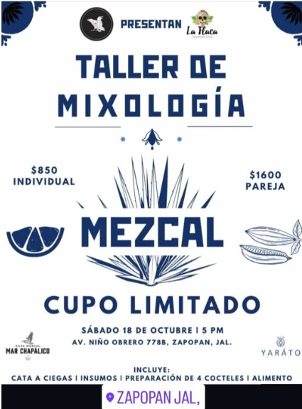 ¿Eres un amante de los destilados y los agaves? ¿O trabajas en la industria buscando nuevas tendencias y conocimientos prácticos? No te pierdas el Taller de Mixología con Mezcal que se celebrará el Sábado 18 de octubre a las 5 PM en Zapopan, Jalisco, presentado por Casa Mezcal Mar Chapalico, Cuervos2Lab y La Flaca Rest.