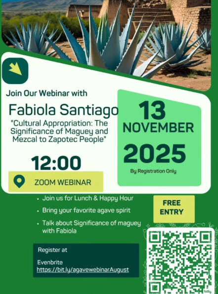 La inscripción es gratuita y solo necesitas registrarte para apartar tu lugar. Puedes hacerlo a través del enlace proporcionado en la publicación de Cali Agave o utilizando el QR del cartel. Este webinar representa una oportunidad imperdible para escuchar directamente a voces expertas sobre la importancia cultural del maguey y el mezcal —no solo como productos, sino como símbolos vivos en la cosmovisión zapoteca. ¡Nos vemos en el webinar para celebrar, aprender y compartir la pasión por el agave!